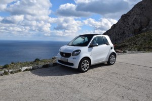 今回余っている車がスマートのスマート・フォーツーだけだったので、スマート・フォーツーを借りました。運が良いことに、オートマ車があったのでそれをレンタル。