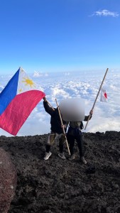 頂上にある椅子でくつろいでいると、Aがフィリピン国旗を掲げている団体を発見。フィリピン人かなと思ったAは彼らに声をかけにいきました。