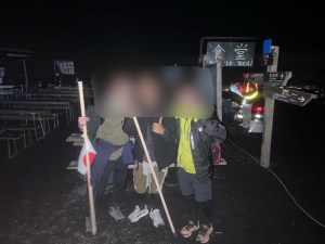 話してみると彼らはベトナム人技能実習生で、自動車整備や介護の仕事をしているそうです。なんでも朝日を見たくて夜から弾丸で登りにきているらしく、途中で休憩をとっていたらしい。狭い道だったのでライトもつけないでいたら危ないのではないかと思いましたが、いちおうヘッドライトは持っていたので一安心。