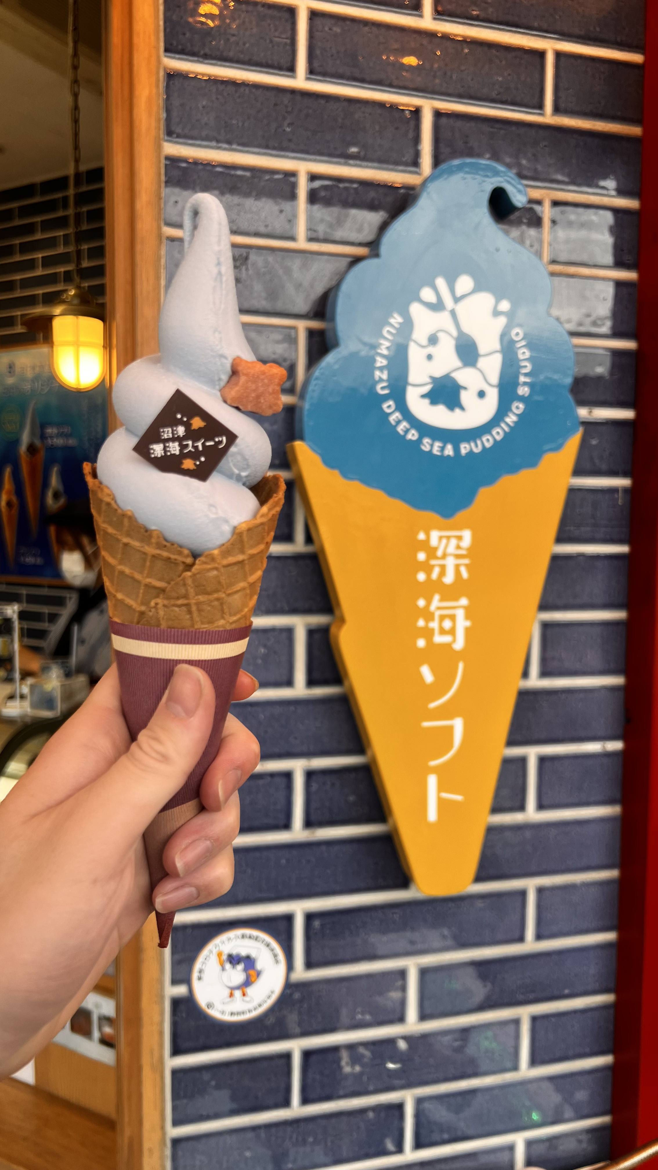 今回はさわやかのハンバーグがメインなので、食べるとしたら海鮮丼とかがっつり食べる系ではなくて、軽く食べられるようなものが良いでしょう。ちょうど沼津港には「深海プリン」というおしゃれなプリンを売っているお店があります。