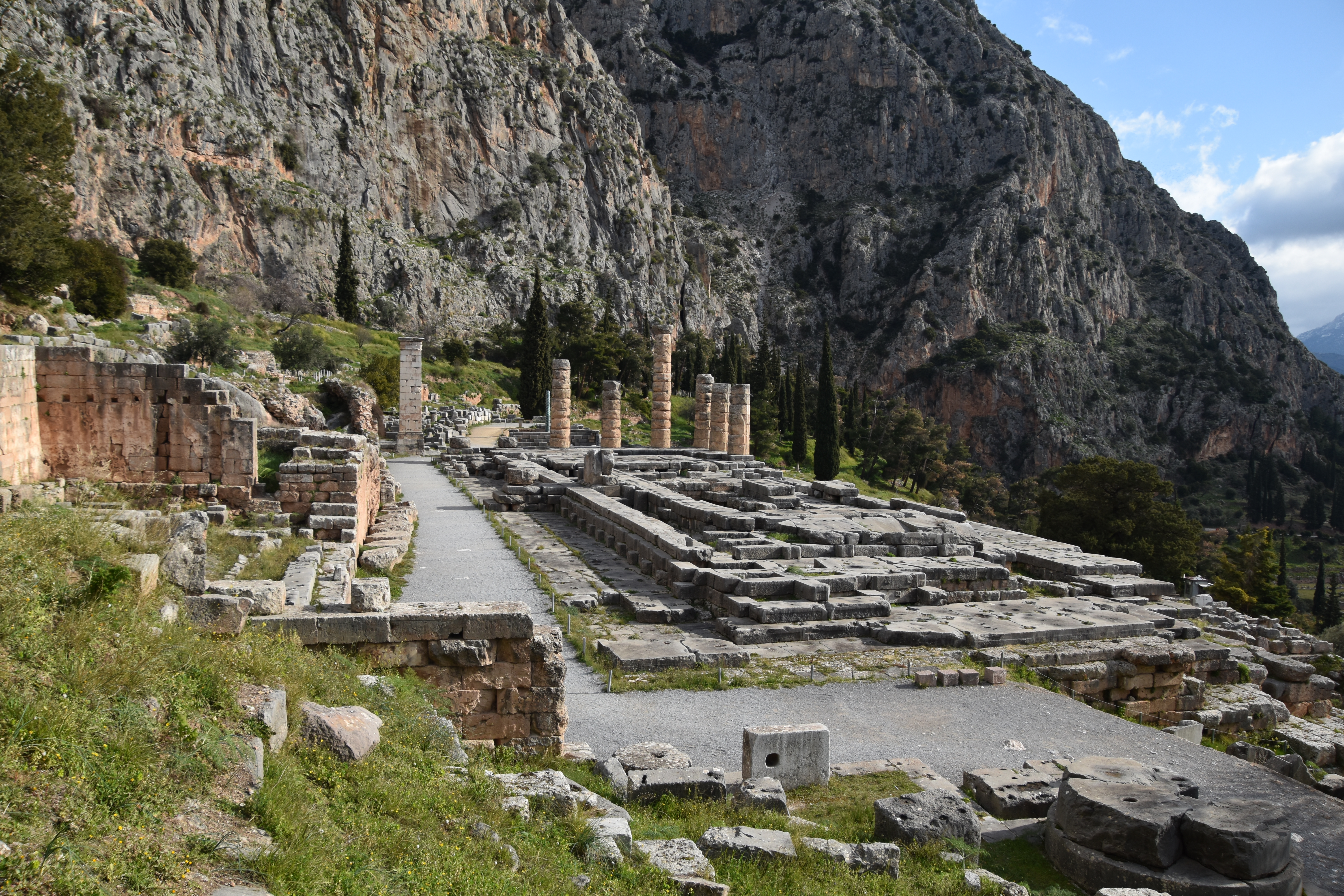 遺跡内にあるアポロン神殿では太陽神アポロンが祀られていて、神のお告げ(神託)を受ける場所となっていました。そのためアポロン神の聖地として古代から多くの人々が訪れ、神託を受けに来ていたそうです。