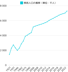 2021年には、移民がフランスの総人口の10.3%、約700万人を占めるまでに増加していて、これは100年前の150万人と比べると約4.7倍の増加となっています。