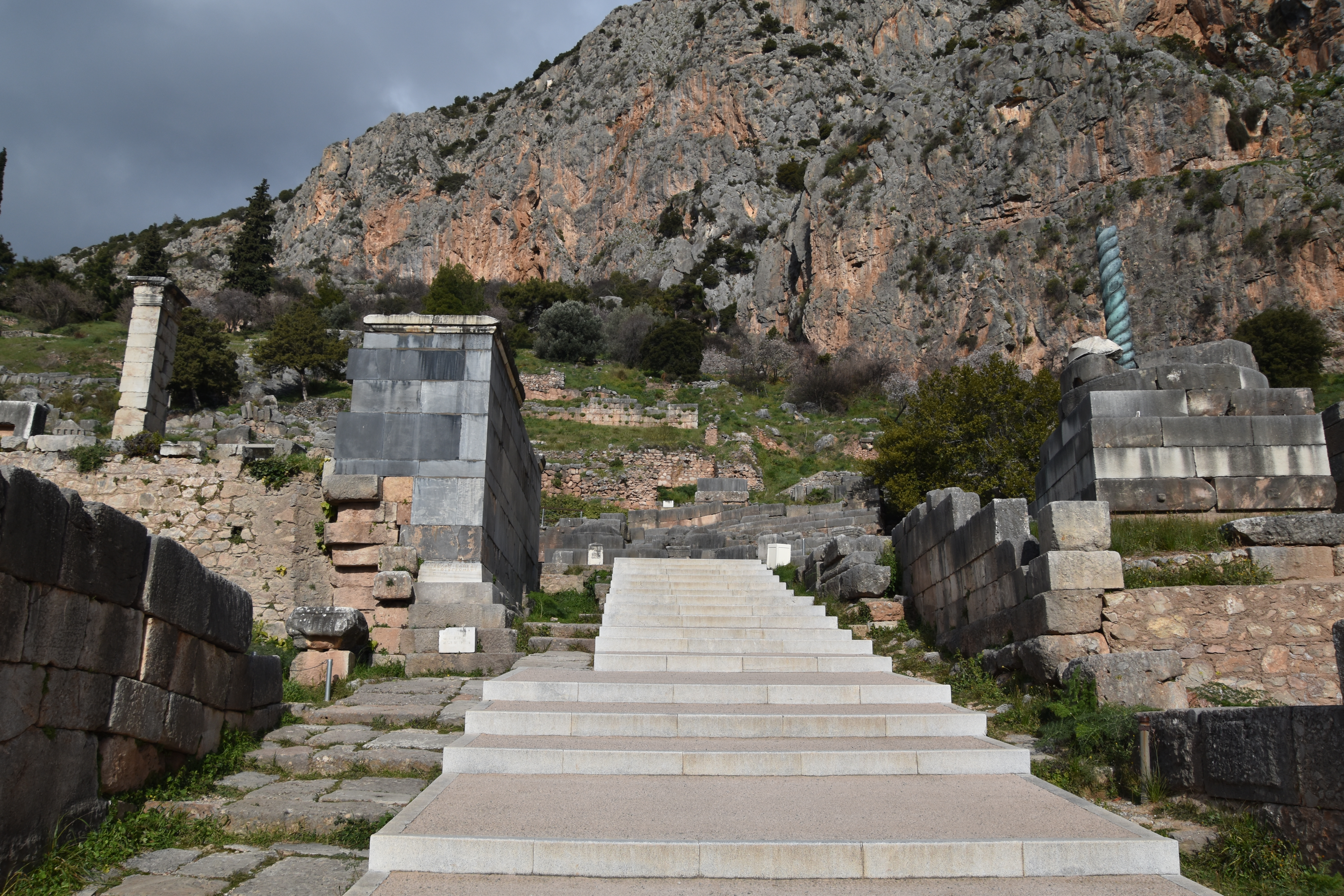 階段を登りきったその瞬間、眼前に現れたアポロン神殿と、そこから一望できるプレイストス渓谷の雄大な風景がまるで旅の果てに待つ最高の贈り物のように感じられました。