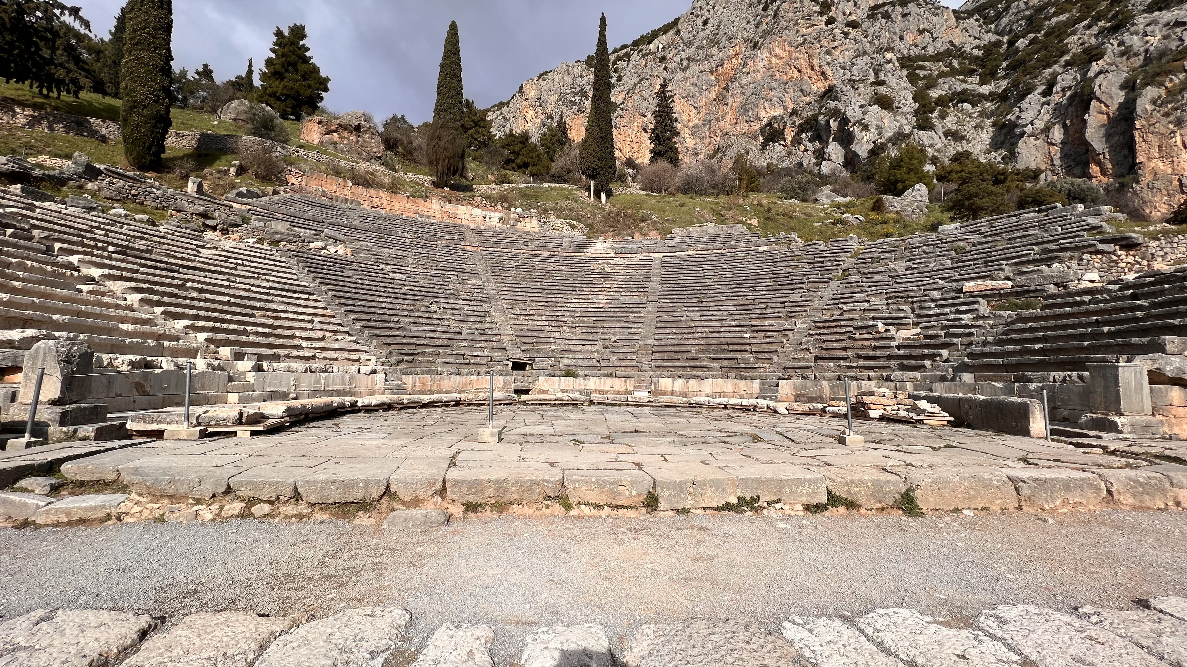 劇場の観客席に立つと、眼下にはアポロン神殿の遺跡、そしてその背景には雄大なパルナッソス山の景色が広がります。この壮大な眺めは圧巻で、訪れる人々に古代ギリシャの文化的エネルギーを五感で感じさせる特別な体験を与えてくれます。