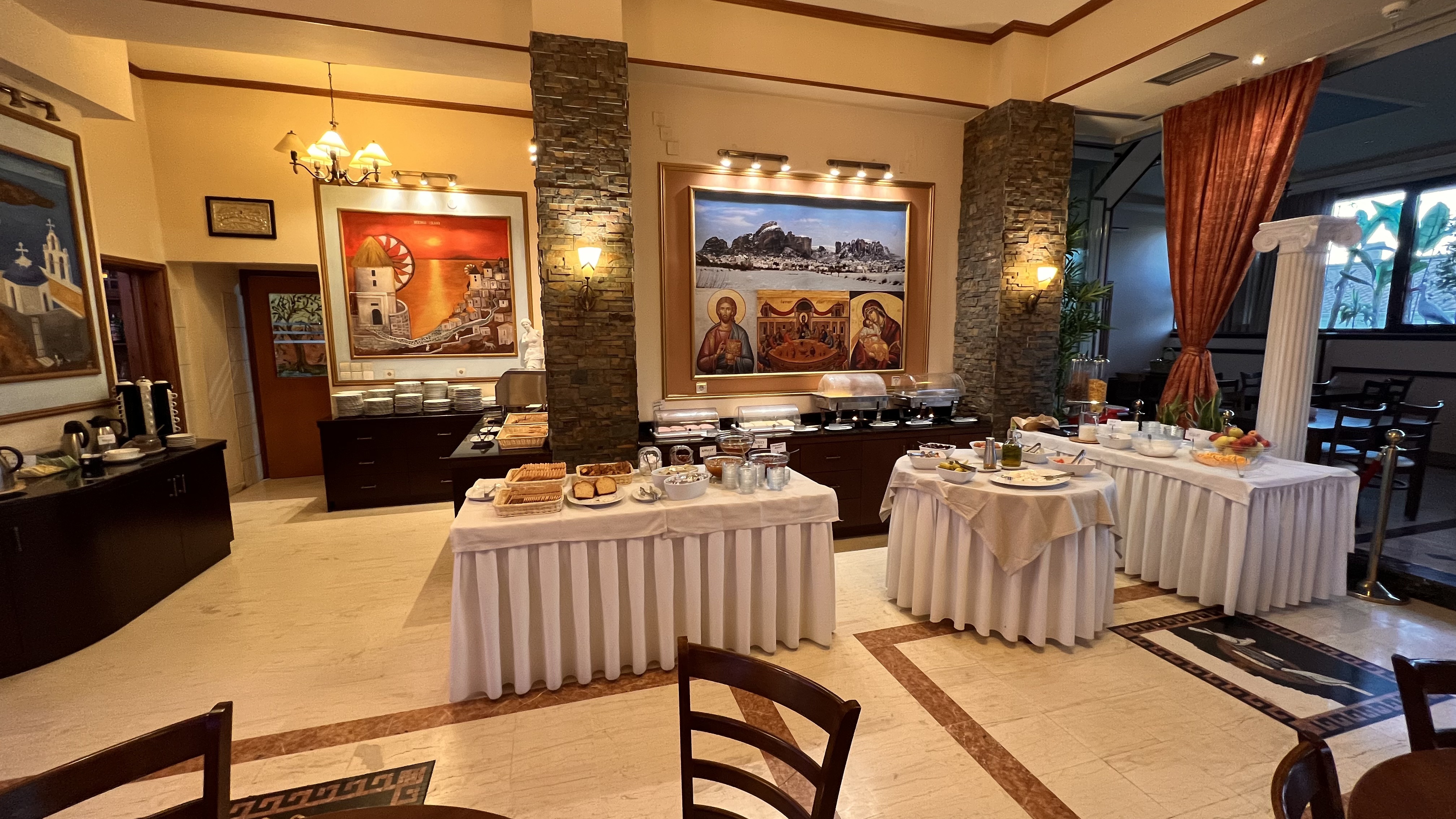 ホテル代に朝食も含まれていたので、1階のロビーで朝食をいただきます。