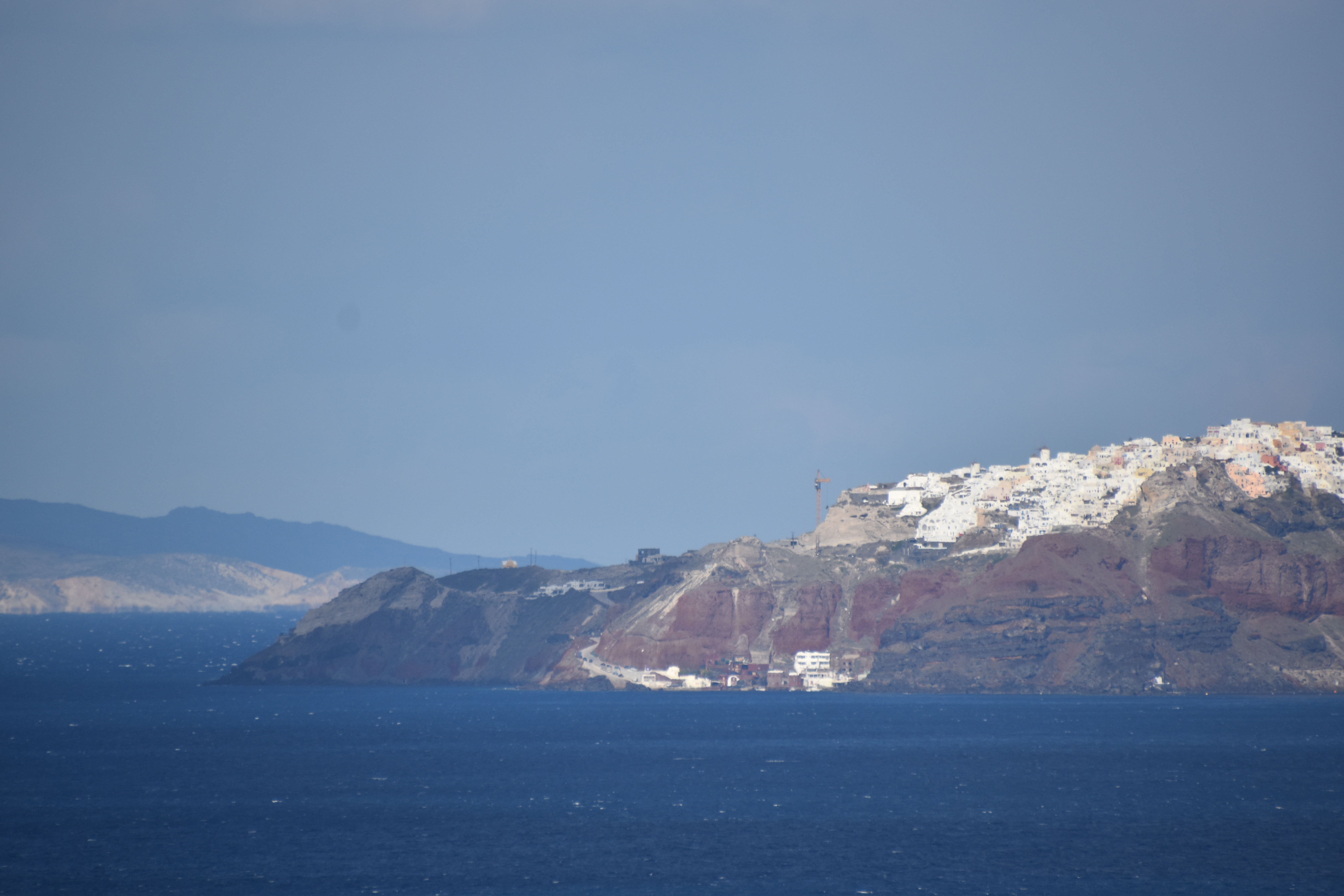 一眼レフの望遠レンズを使えば、このようにエーゲ海をバックにサントリーニ島の街並みを撮影することができ、まるでプロが撮ったような美しい写真を残すことができます。