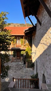 内部には保存状態の良いフレスコ画や聖具が展示されており、特に祭壇の金色の装飾は光を受けて神々しい輝きを放っていました。この修道院は歴史的にも重要で、長い年月の中で戦争や地震の被害を受けながらも、修道士たちの祈りと努力によって今日まで守り継がれてきたそうです。