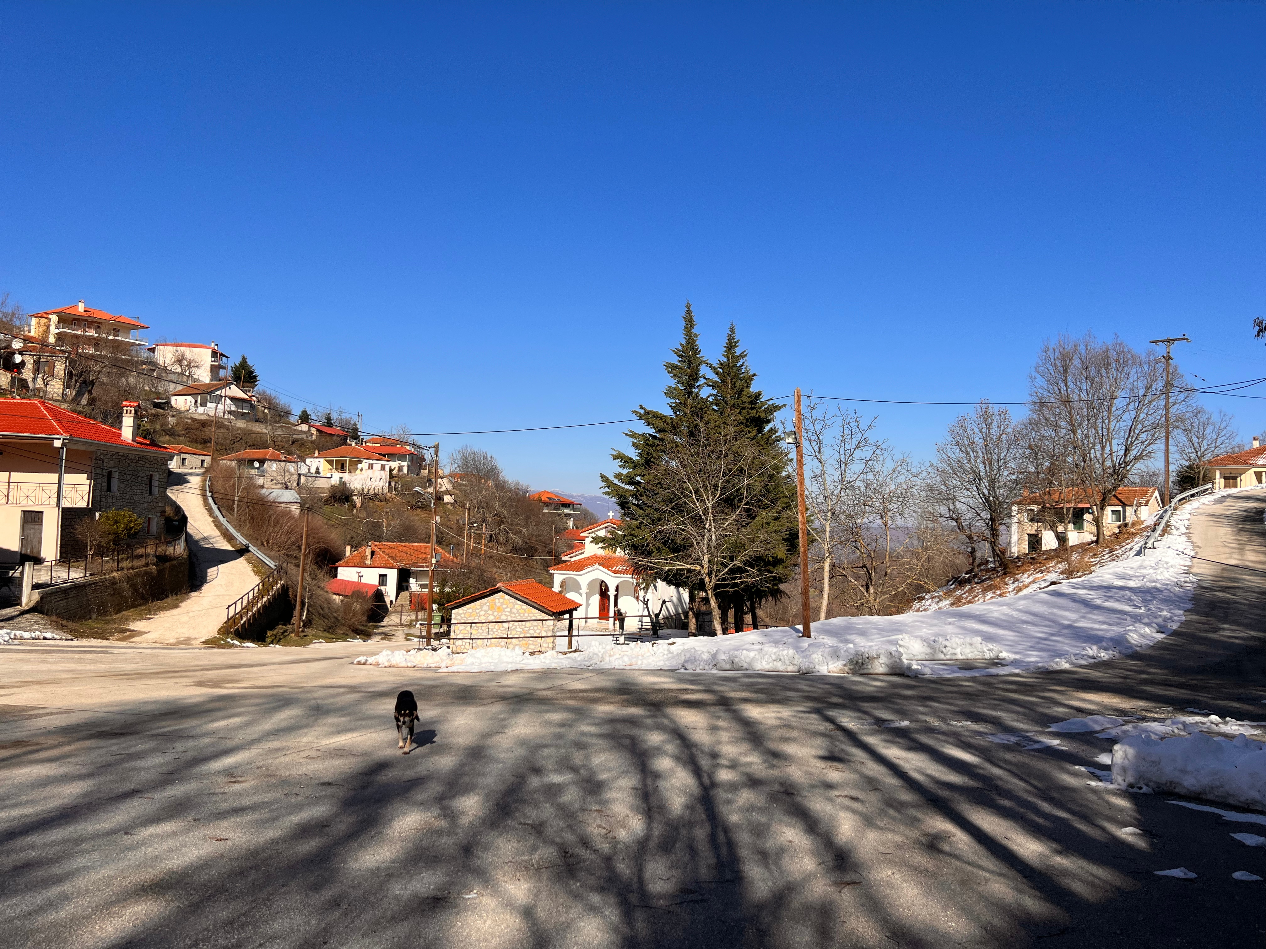 煉瓦色の屋根の家々は、冬のやわらかな光を受けて、まるで物語の挿絵のような趣を漂わせているよう。メテオラという観光地の喧騒から離れたこの村では、時間が音もなく、静かに流れていくようでした。
