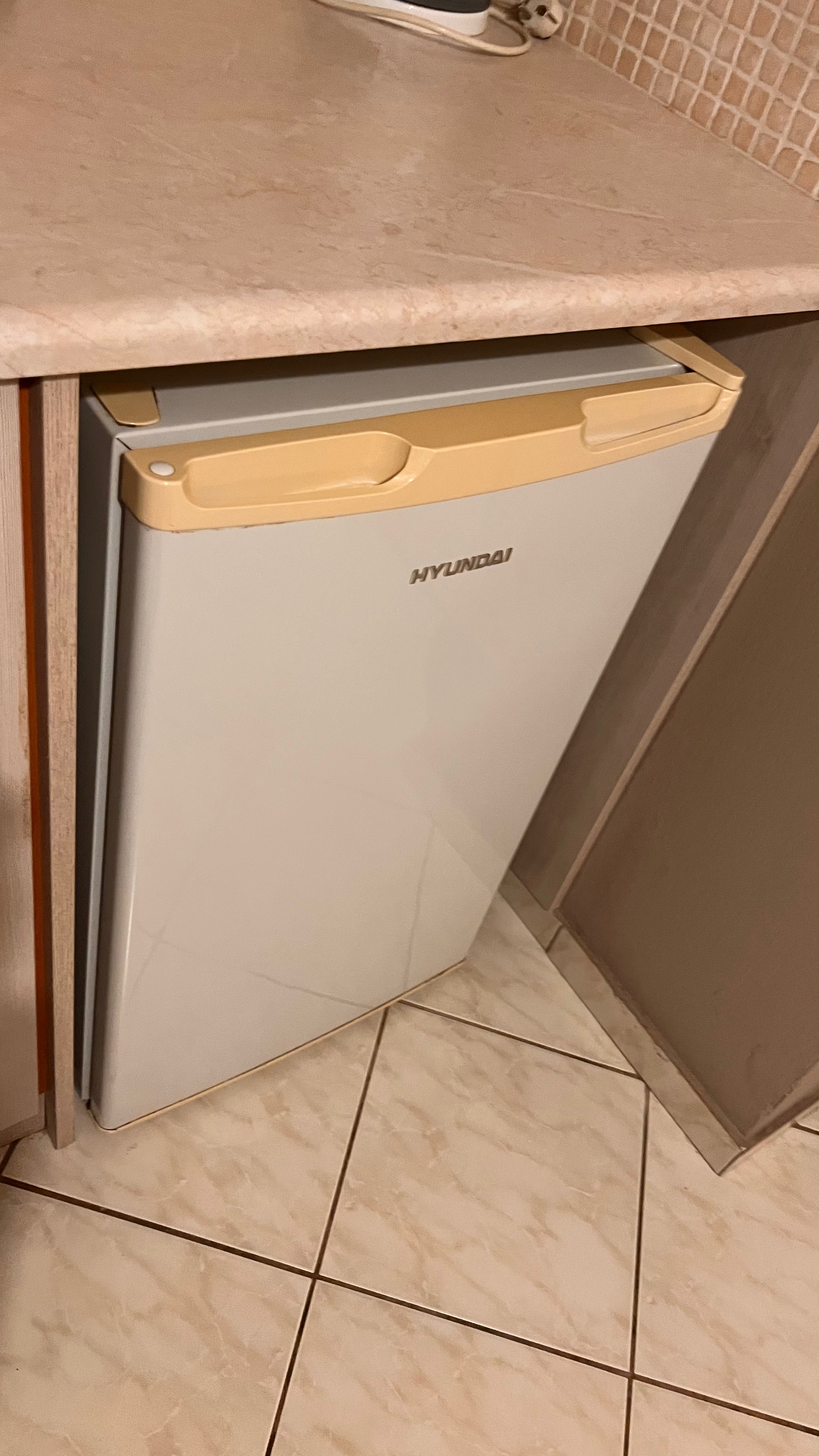 部屋の設備をチェックしていると、面白いものを発見しました。冷蔵庫がなんとヒュンダイ製だったのです。ヒュンダイといえば自動車のイメージしかなかったから、まさかこんな家電も作っていたとは意外でした。旅先でこんな風に、思わぬ発見があると楽しいですね。