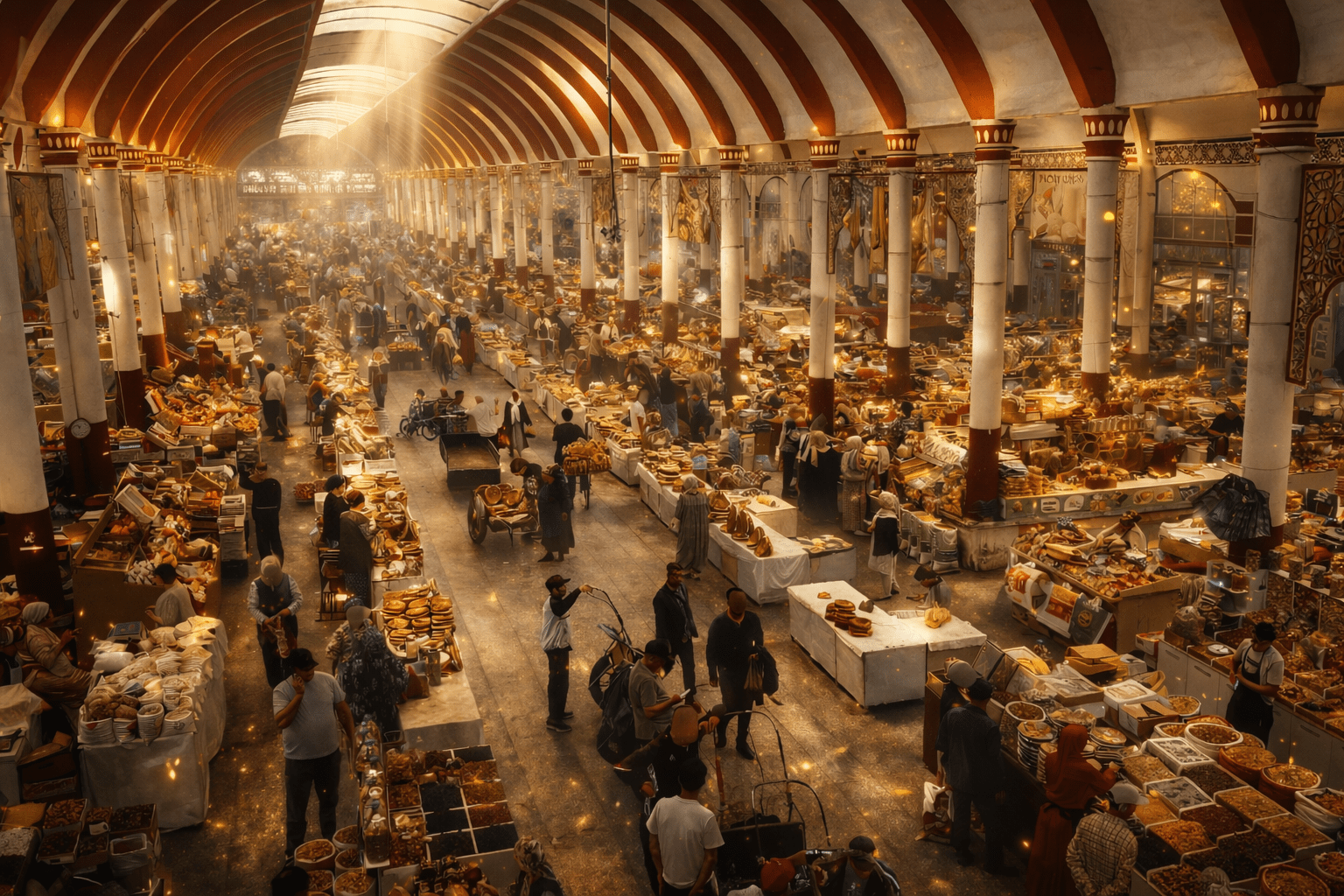 まず目を奪われるのは、幾何学模様のように美しく積み上げられたナッツやドライフルーツの山。特産のクルミは殻を割るたびに芳醇な油分を放ち、ピスタチオやアーモンドの香ばしさが鼻腔をくすぐります。