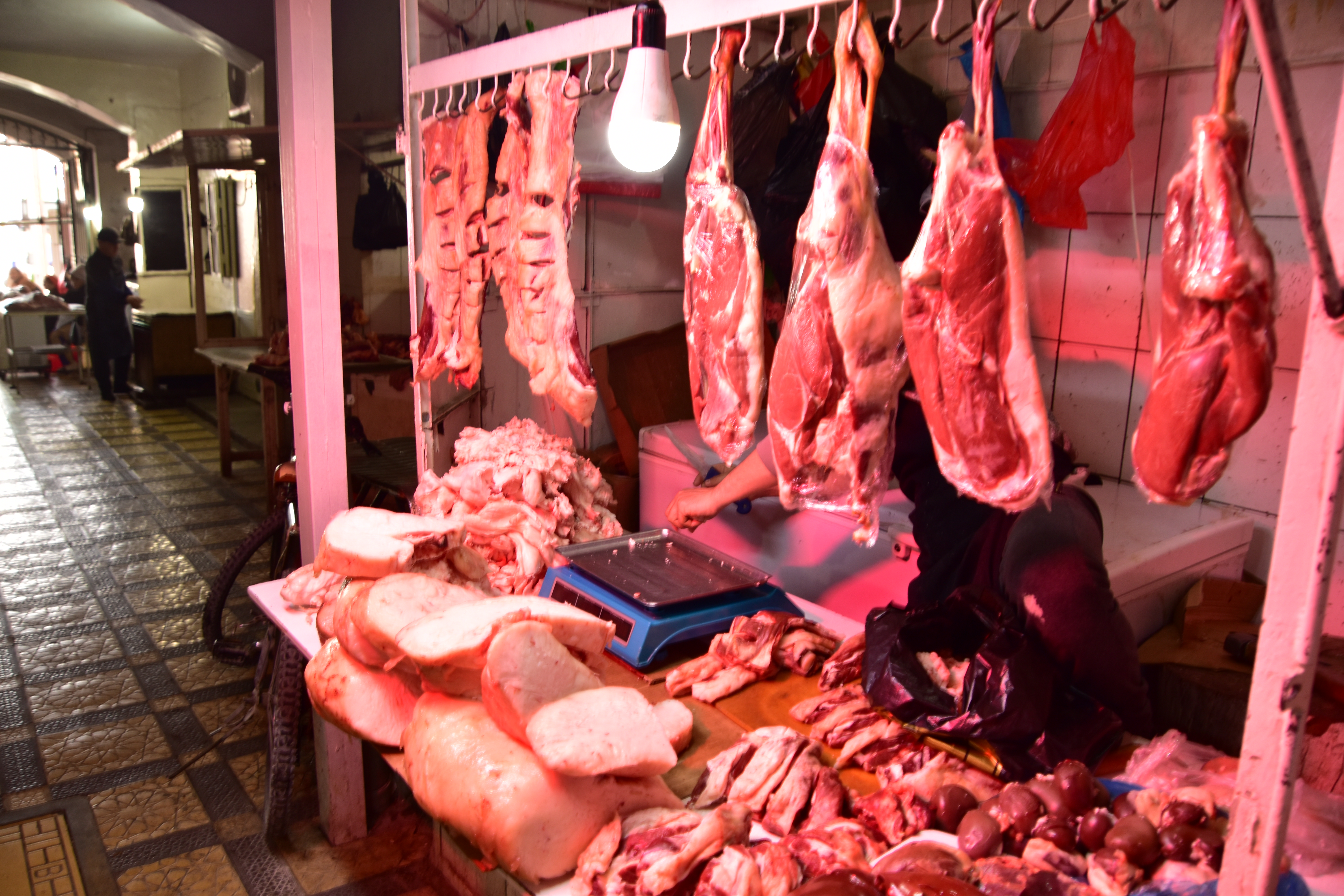 精肉コーナーに足を運ぶと、吊るされた羊の塊肉を職人が無駄のない手つきで捌き、鈍い音を立てて骨を断つ。