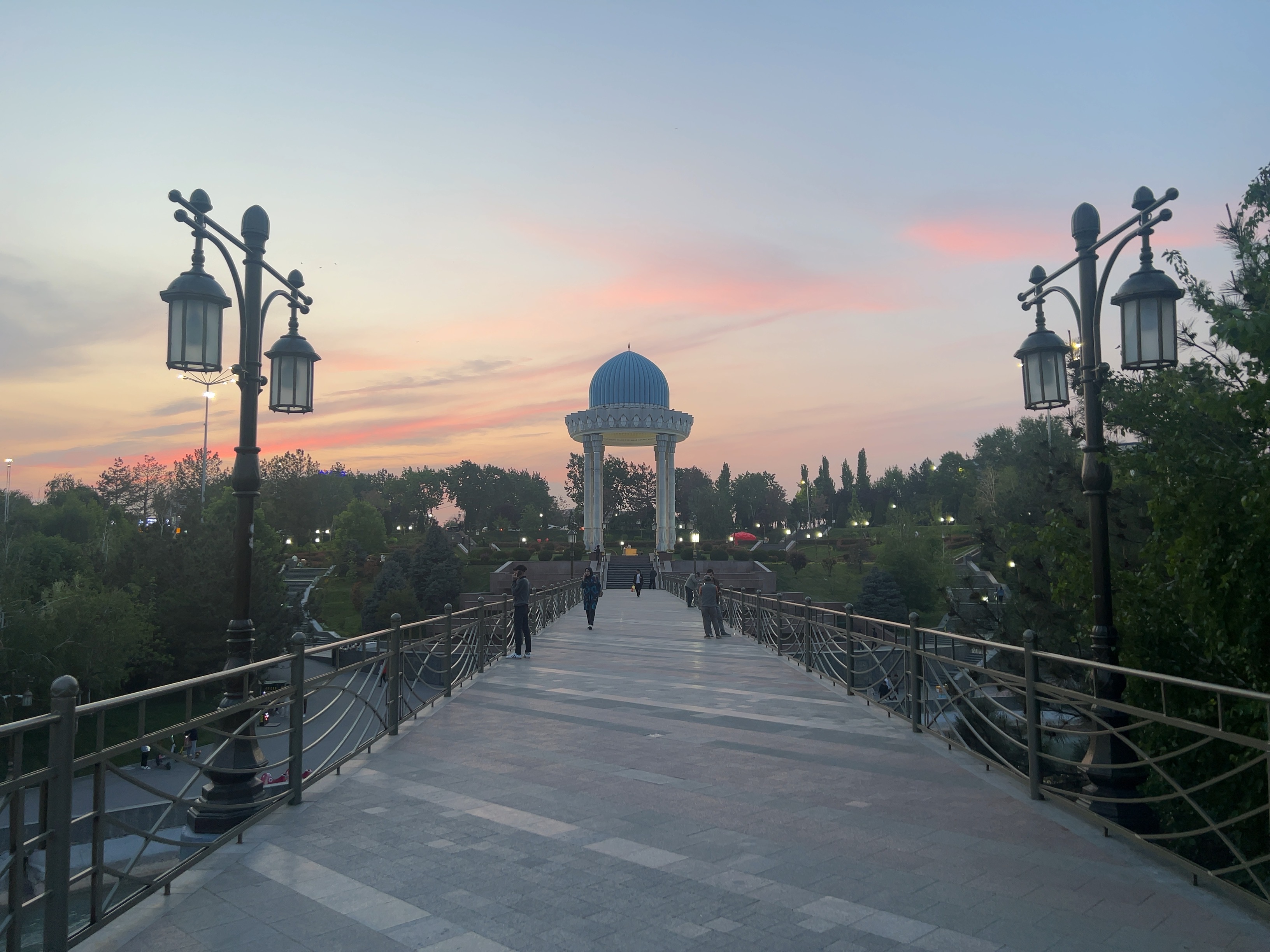 橋の上に立つと穏やかな景色が広がっていて、思わず深呼吸したくなる。タシュケントタワーも近くに見えて、写真を撮る観光客や散歩を楽しむ地元の人の姿もちらほらいます。